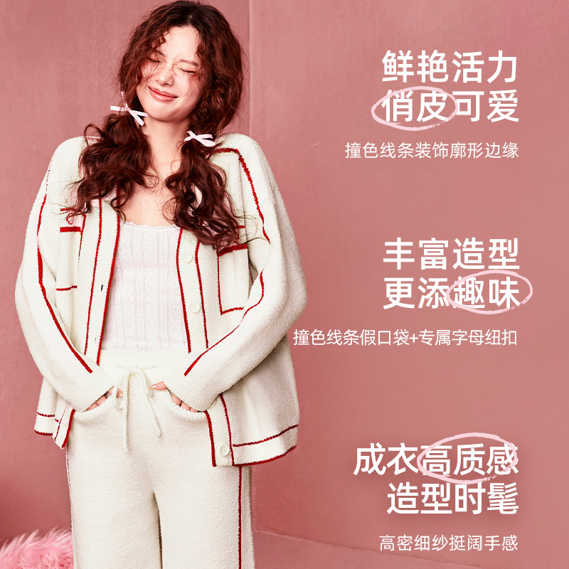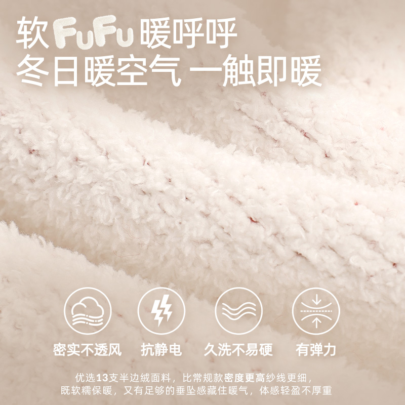 好奇蜜斯半边绒珊瑚绒秋冬家居服套装 女可外穿睡衣加绒加厚新款