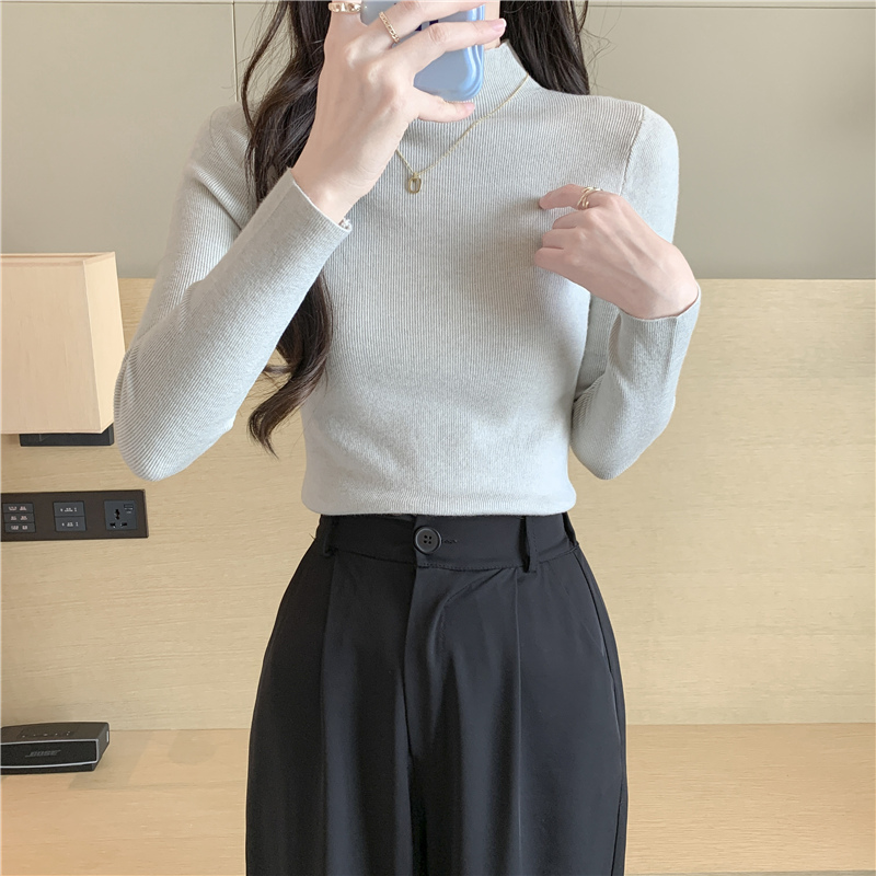 上衣秋冬内搭黑色毛衣女士打底衫 早秋季 针织衫 紧身长袖 半高领修身