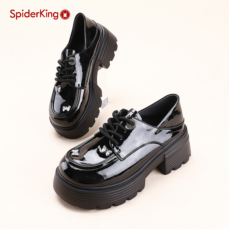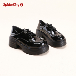 轻便舒适不累脚女鞋 系带厚底增高单鞋 女商场春季 蜘蛛王漆皮乐福鞋