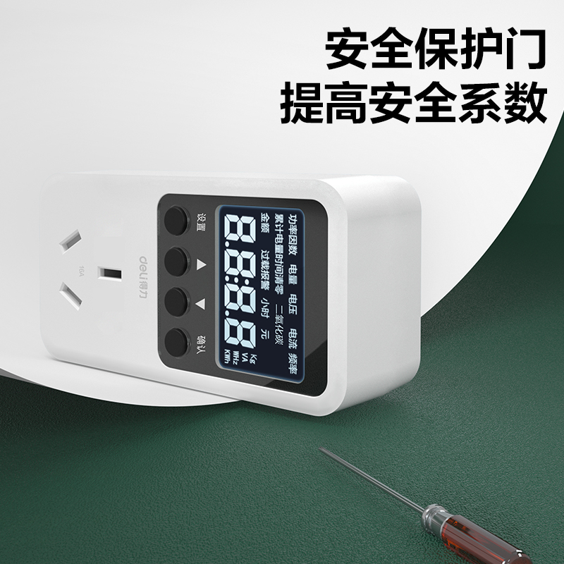 得力电表计度器电量计量插座功率计测电量测试家用智能电力监测仪