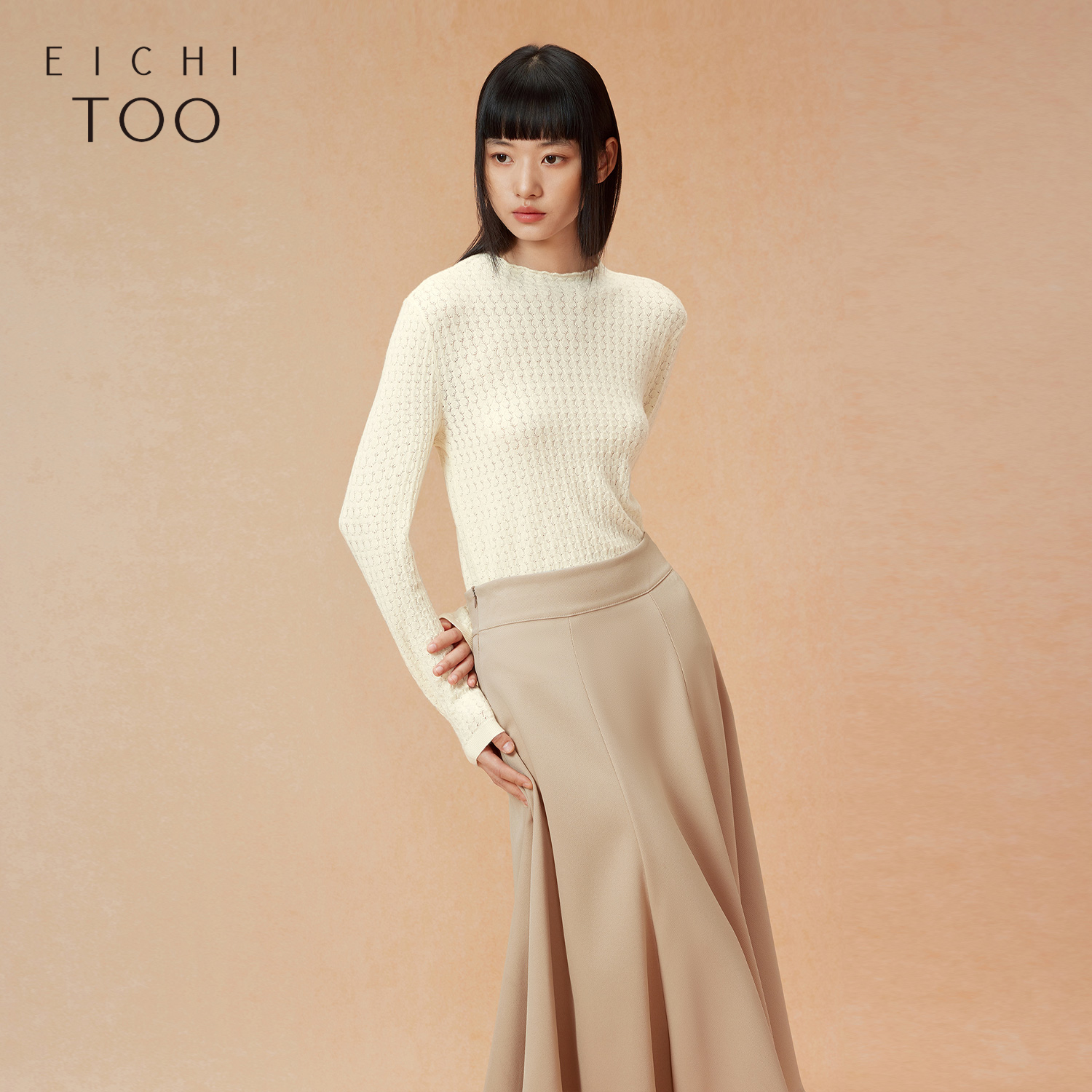 肌理感软糯舒适长袖 女春秋新款 上衣 打底衫 爱居兔白色针织衫