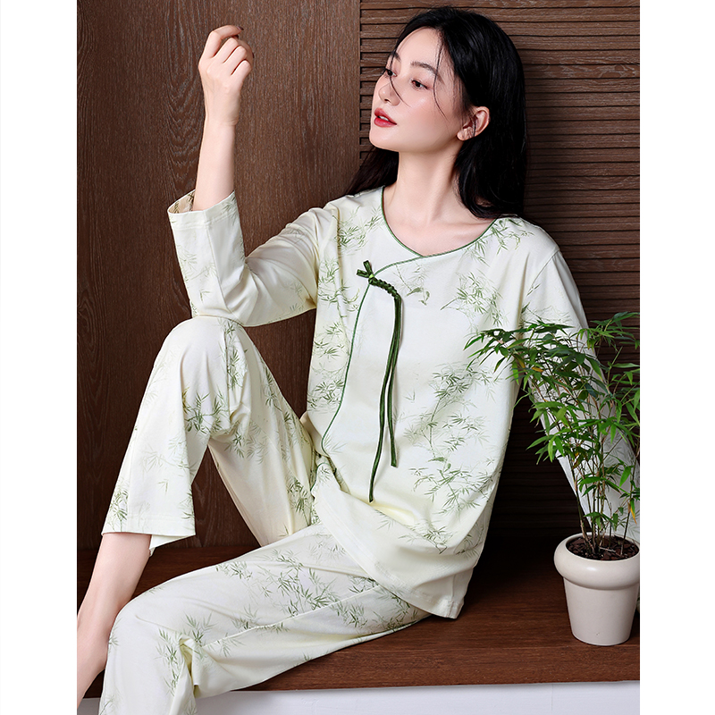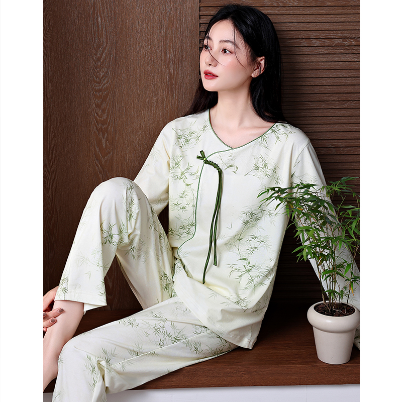 睡衣女春秋款 2025新款 纯棉长袖 秋季 秋冬全棉国风家居服 女款 新中式