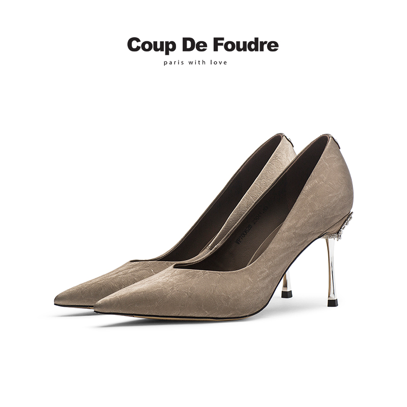 轻奢秋季 优雅性感单鞋 法式 时尚 女 百搭真皮浅口尖头高跟鞋 CDF女鞋