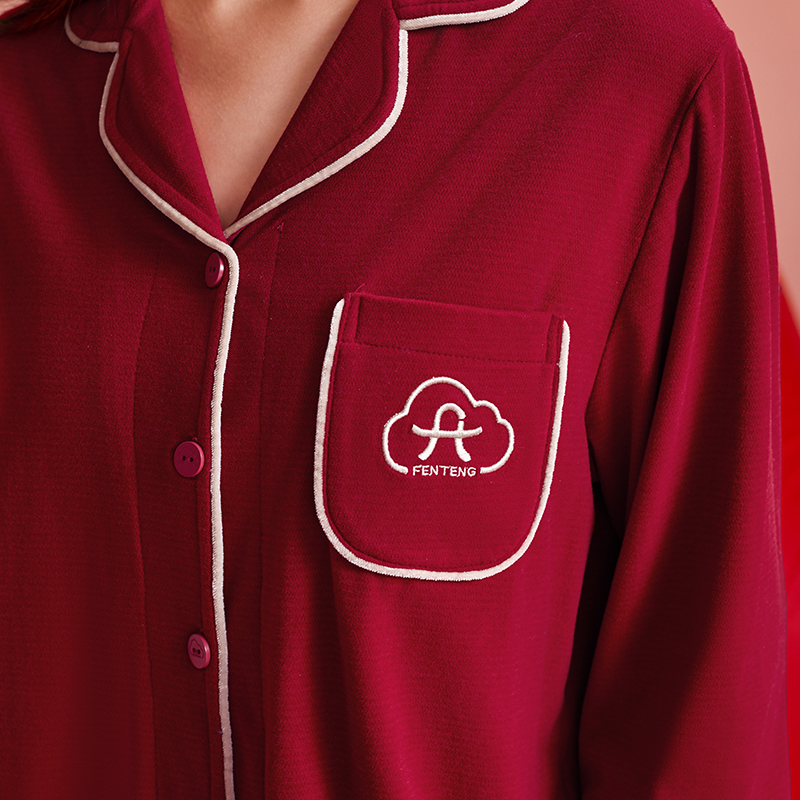 长袖 大码 开衫 男士 家居服 女红色结婚本命年套装 芬腾情侣睡衣春秋季