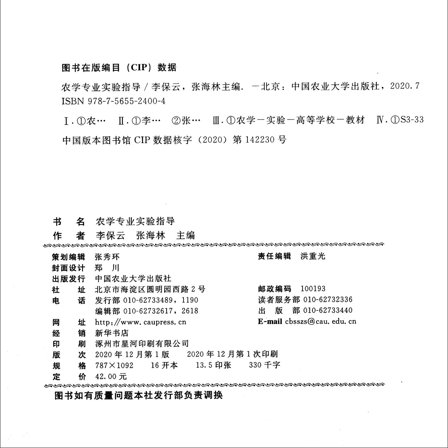 胡兆荣 袁旭峰 李芳军主编 农学专业实验指导 中国农业大学出版 张海林 9787565524004 社教材 李保云
