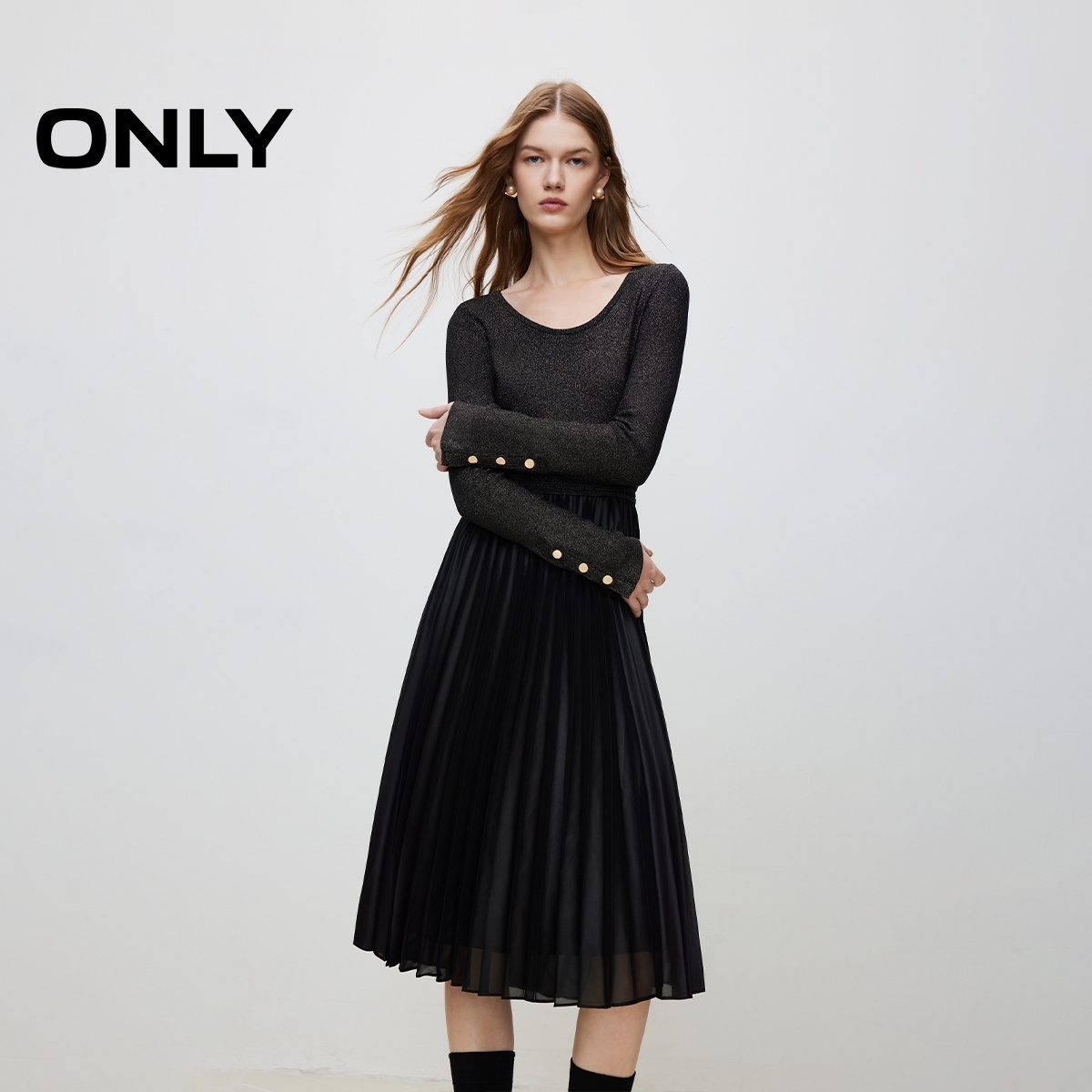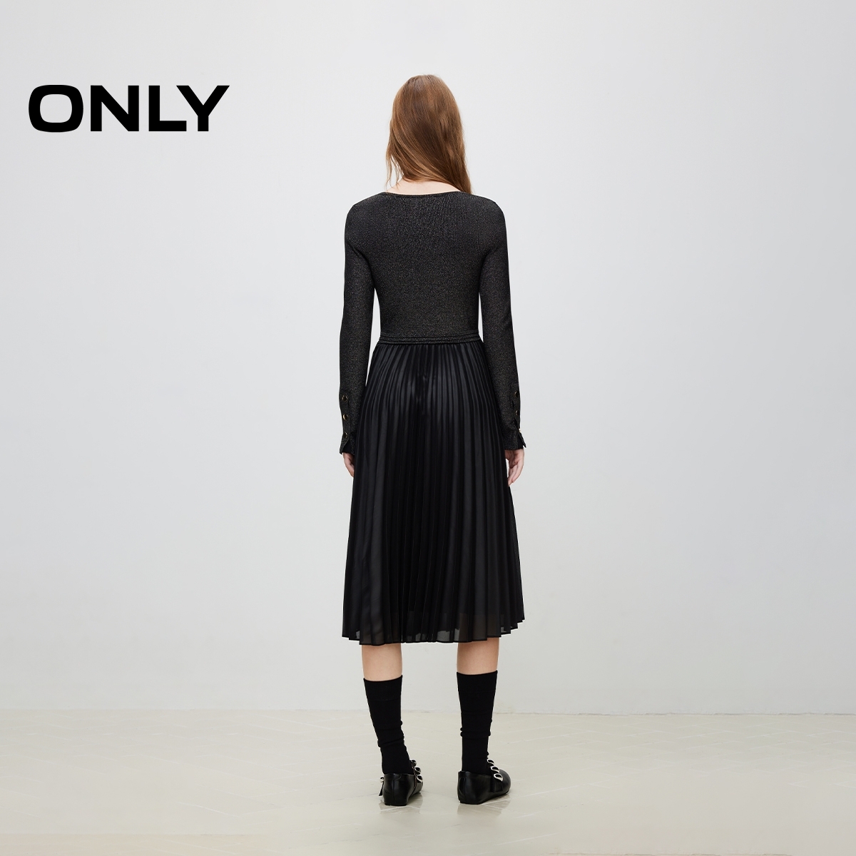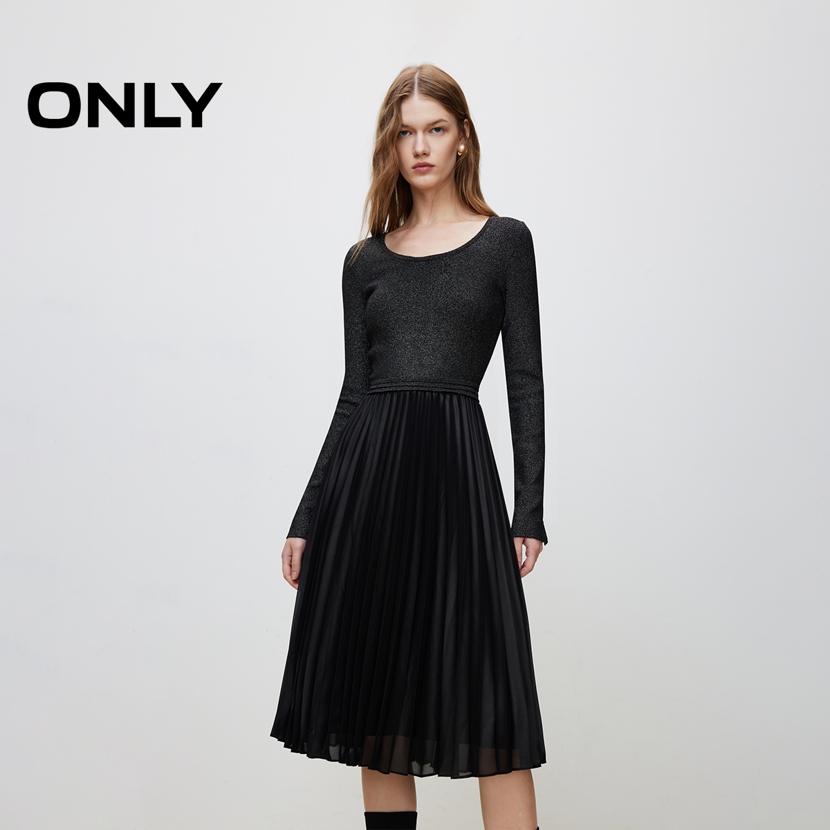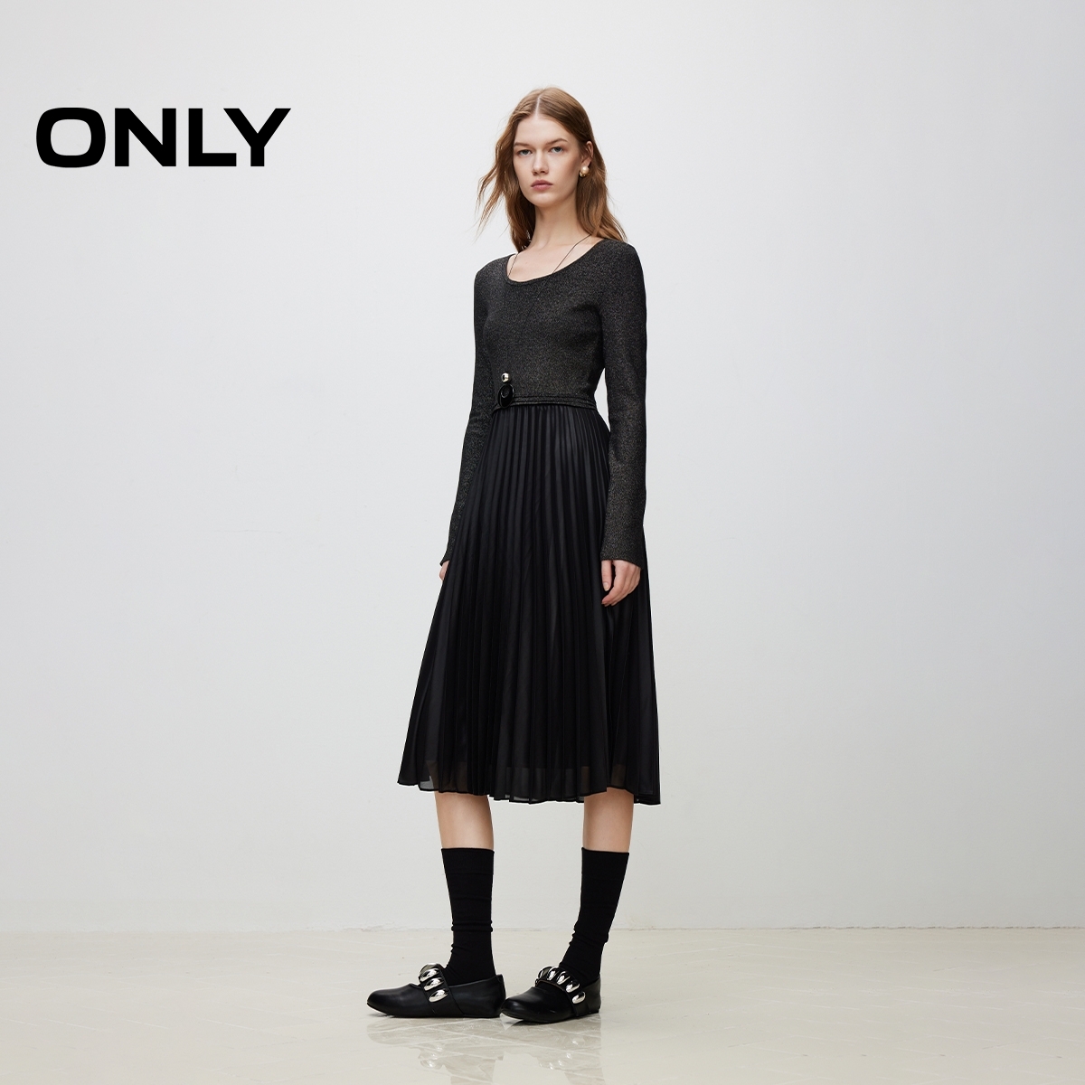 拼接光感中长款 时尚 夏季 百褶裙连衣裙女 ONLY奥莱
