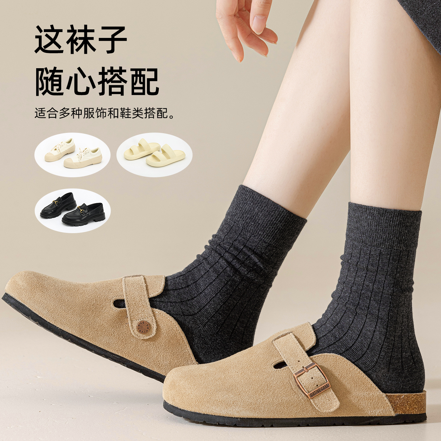 搭勃肯鞋 薄款 中筒袜 堆堆袜吸汗防臭无骨纯棉夏季 白色袜子女春秋款