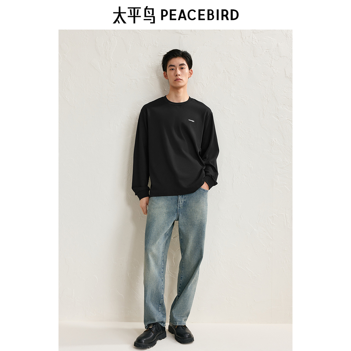潮流纯棉长袖 太平鸟男装 纯色美式 男冬季 t恤男 70支打底衫