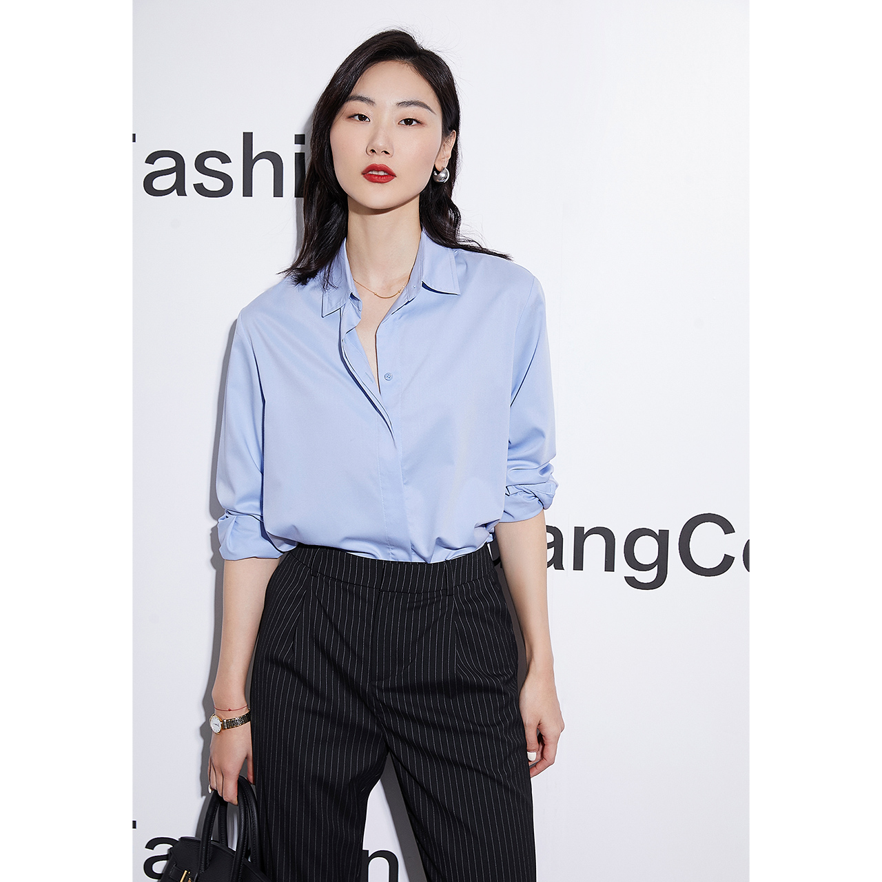 暗扣设计气质高级感职业工装 匡册蓝色衬衫 廓版 秋季 衬衣 女2025新款