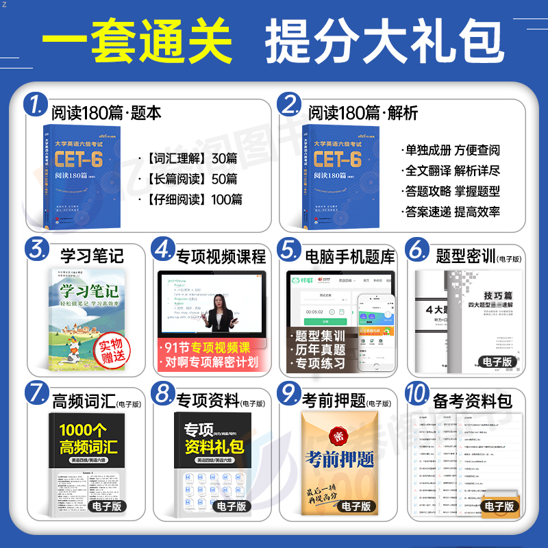 备考2025年12月大学英语六级考试阅读理解180篇写作120词汇书四六级历年真题库试卷46证学习资料巨微6单词作文理解专项训练模拟卷