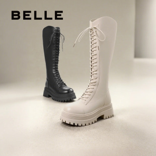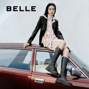 百丽女靴子厚底高长靴冬新款 显瘦瘦靴弹力靴加绒长筒靴B2241DG4