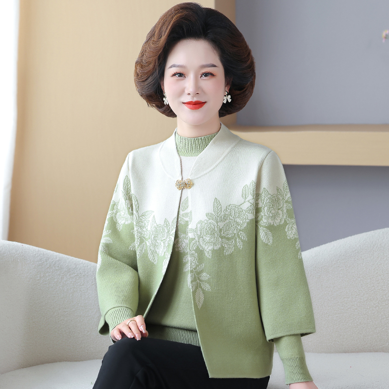 春秋上衣本命年秋冬两件套装 毛衣外套中老年女装 针织开衫 妈妈秋装