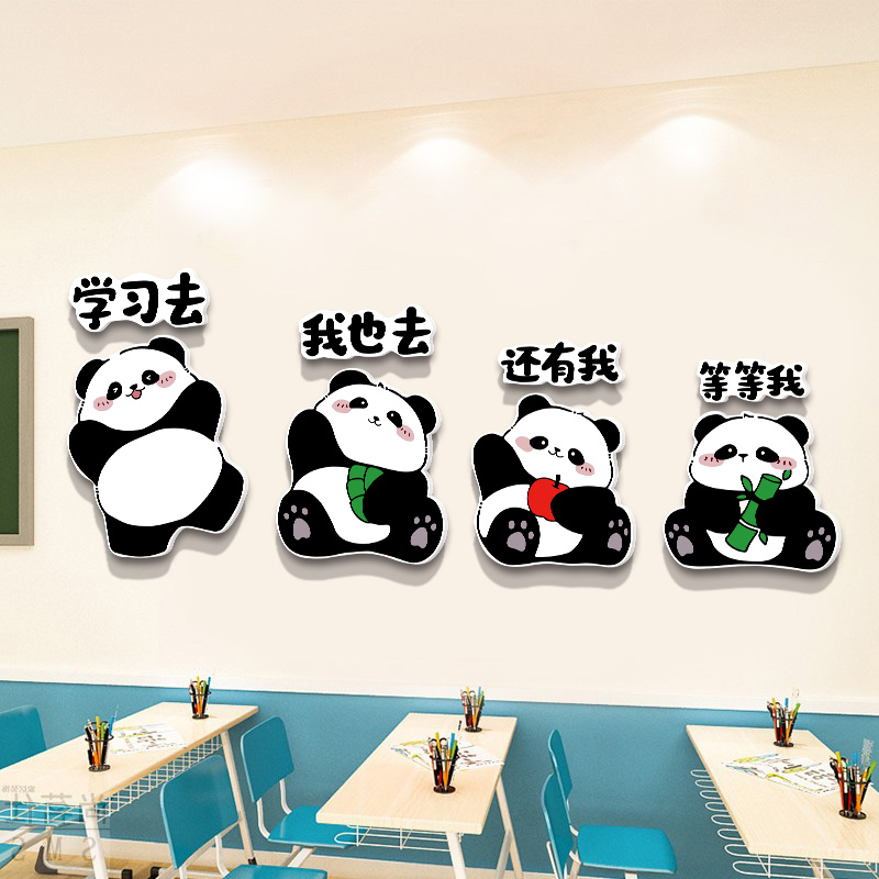 创意熊猫墙贴幼儿园小学班级文化墙装 饰培训班中考教室黑板报布置