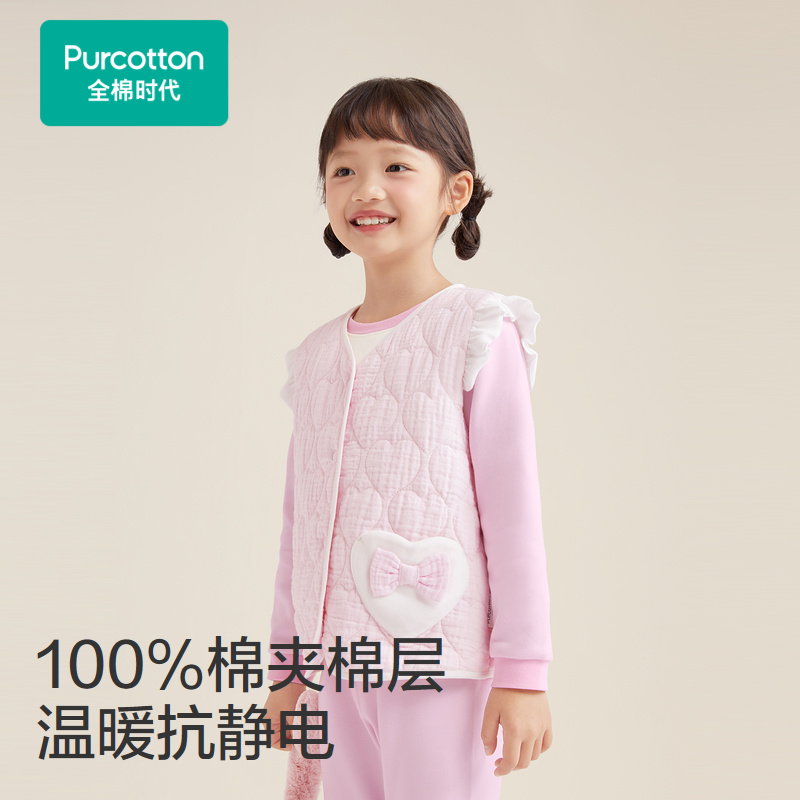 全棉时代儿童空气褶皱纱夹棉秋冬新款 家居马甲男女宝宝背心