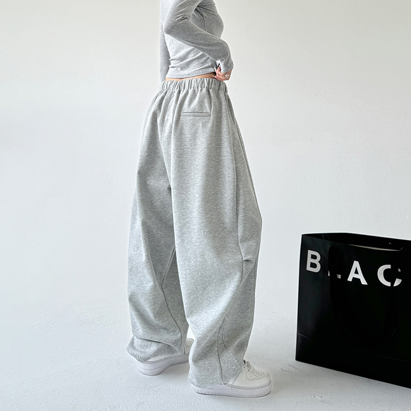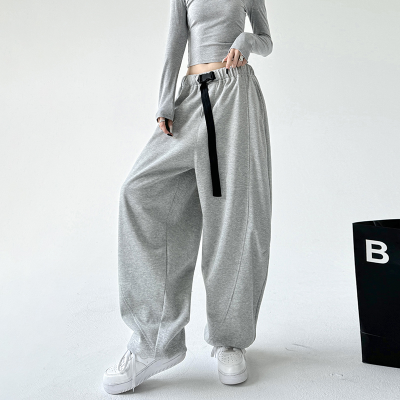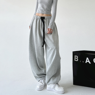 松紧腰灰色运动裤 新款 女2025秋冬装 休闲痞帅宽松阔腿弯刀针织卫裤