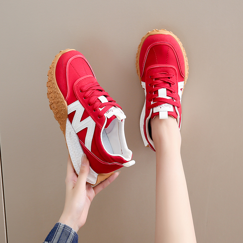 女款 休闲运动鞋 2025秋季 棕色内增高设计感小众时尚 新款 人本德训鞋