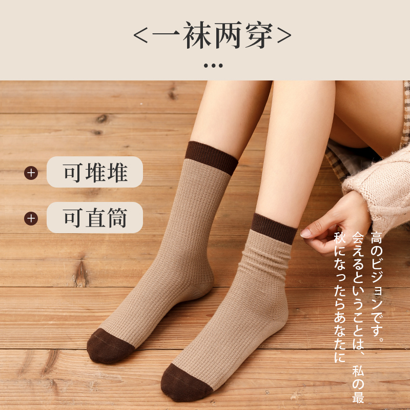 爆款 防臭吸汗绿色长筒女袜2025新款 纯棉中筒春秋冬季 堆堆袜子女款