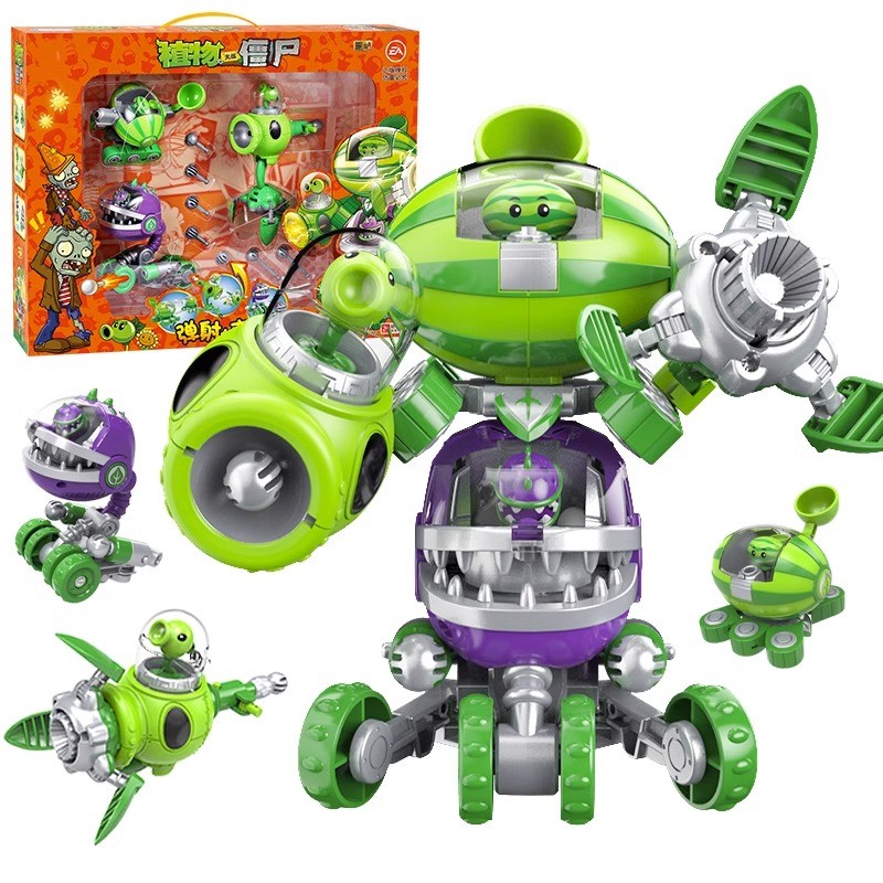 正版 植物大战僵尸2玩具西瓜投手豌豆射手大嘴花变形合体机甲套装