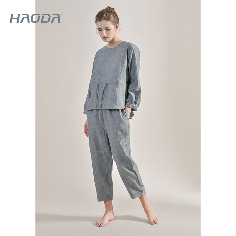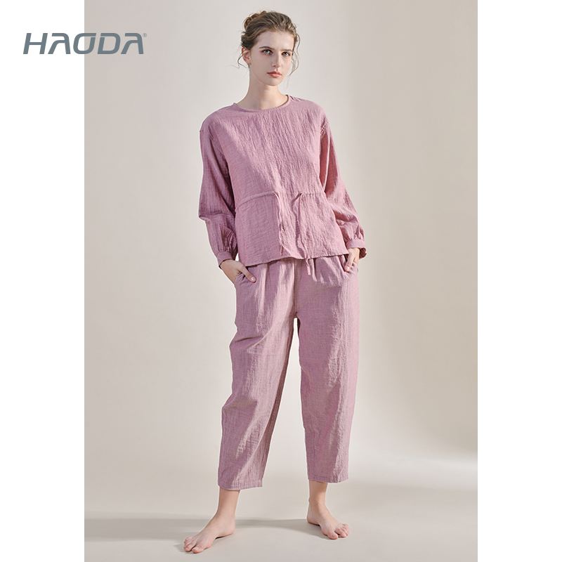 长袖 全棉大码 套装 女款 家居服 简约休闲秋季 芬腾春秋睡衣女纯棉开衫