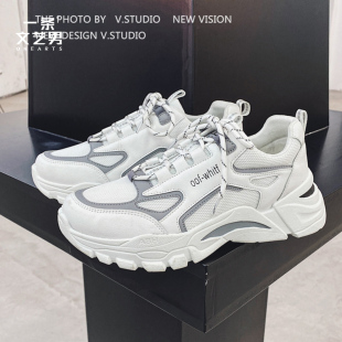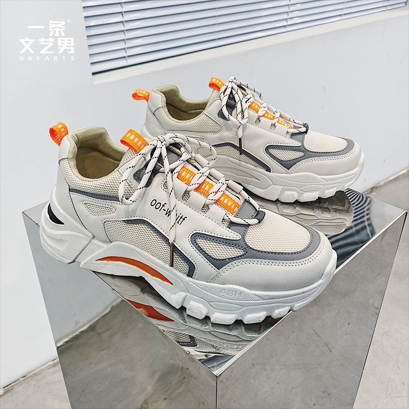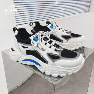 莆田男鞋 秋冬透气网面防臭复古百搭运动休闲跑步厚底增高老爹潮鞋