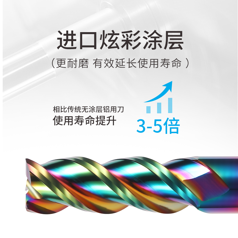 德利星58度3刃钨钢硬质合金七彩铝用CNC立铣刀高光镜面铝合金专用