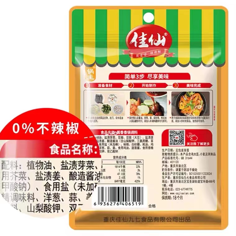 佳仙麻辣香锅酱香香锅底料包不辣 麻辣干锅底料正宗商家用调料