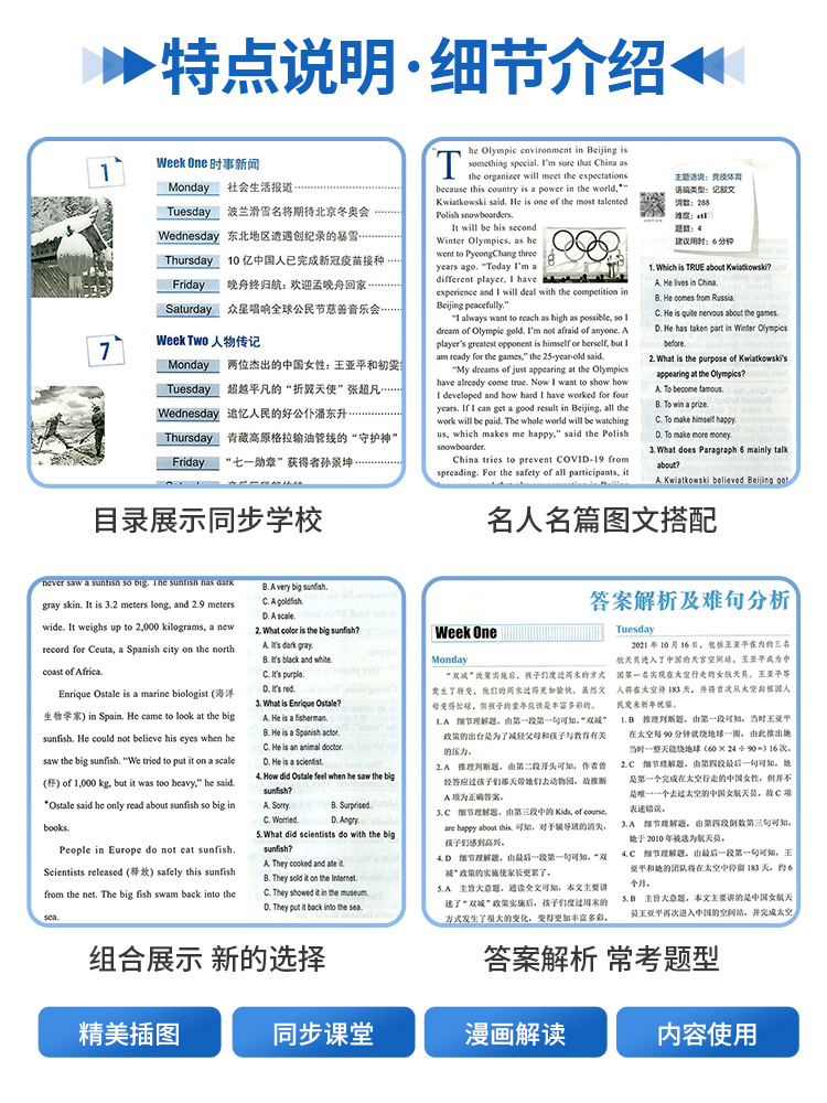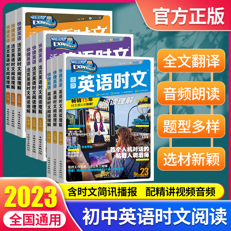 2023版 活页快捷英语时文阅读英语七八九年级24期23期22期上册下册初中英语完形填空与阅读理解组合训练初一初二初三中考热点题型
