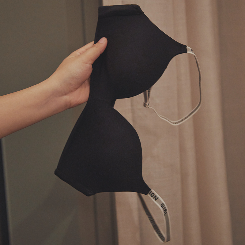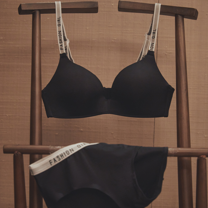 无痕内衣女小胸聚拢无钢圈薄款 显大防下垂潮流字母肩带 文胸罩套装