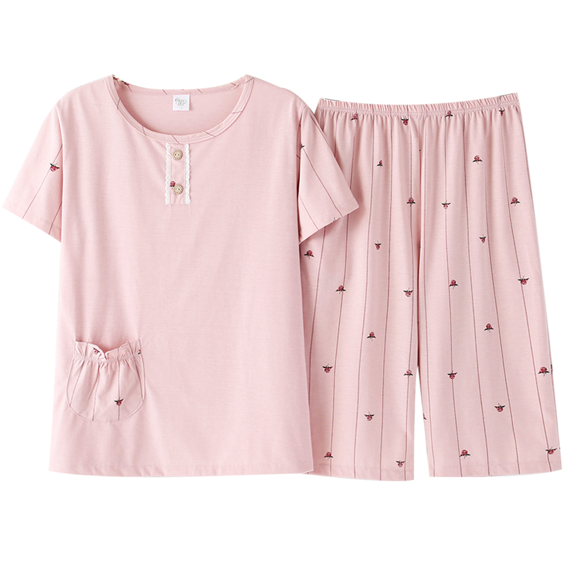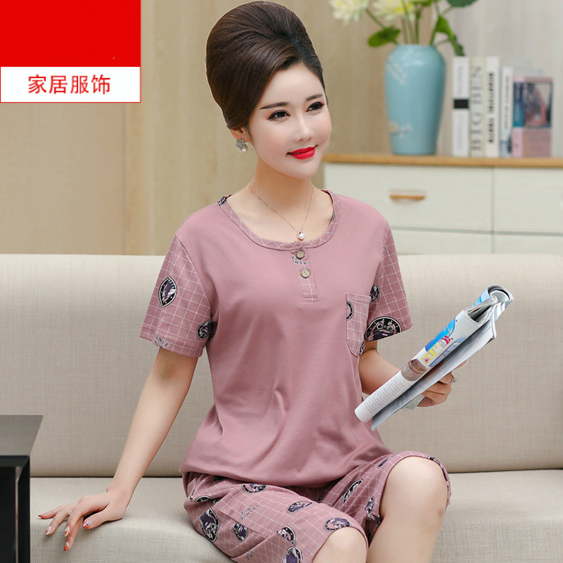 加大码 女士夏季 两件套妈妈家居服 中老年全棉夏天纯棉睡衣套装 短袖