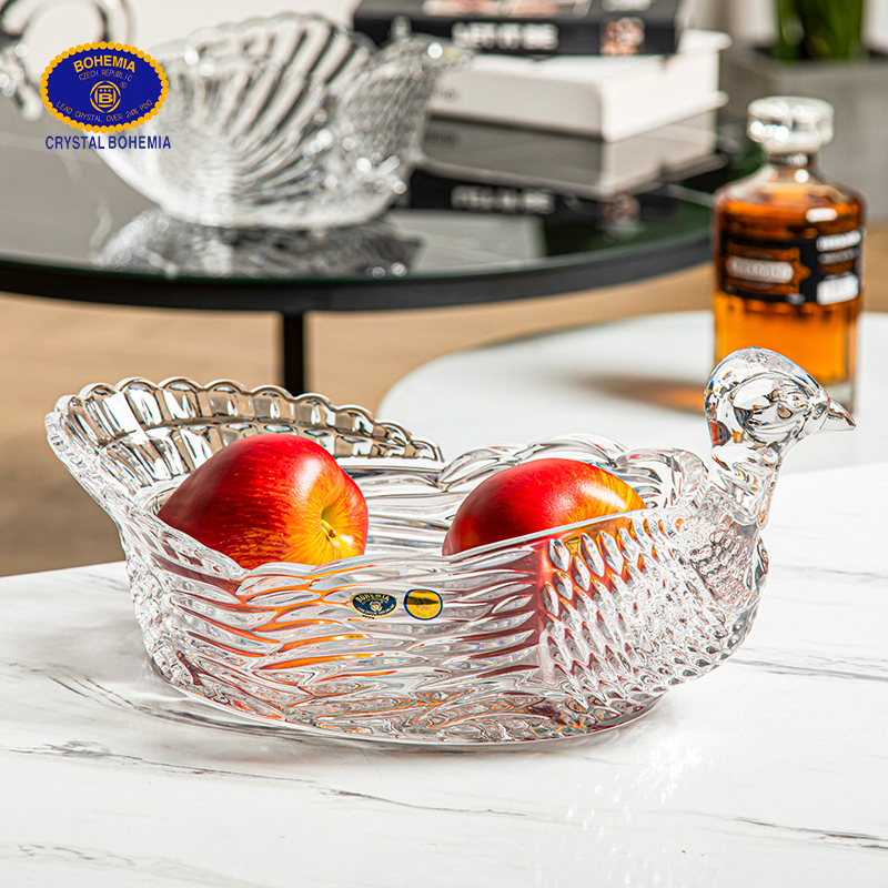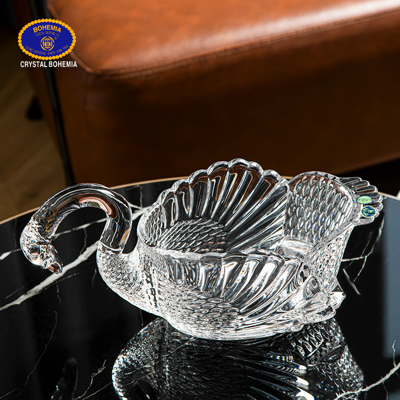 饰用品摆件 结婚居家装 捷克BOHEMIA原装 进口水晶玻璃天鹅果盘时尚