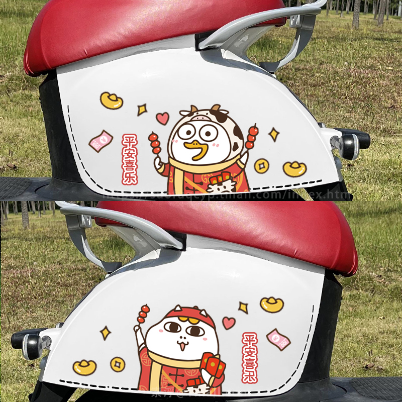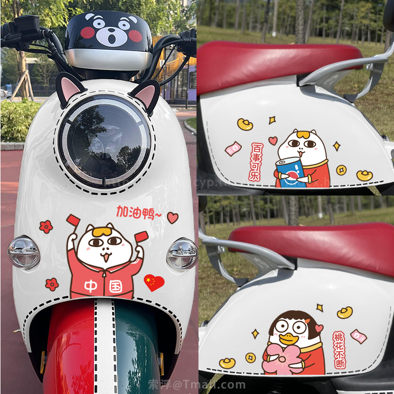 电动车贴纸防水防晒电瓶车装 饰小刘鸭雅迪爱玛小牛贴画遮挡划痕贴