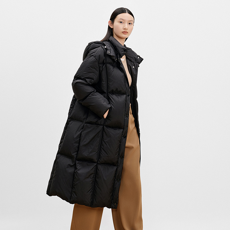 衣服官方保暖上衣连帽运动外套 鸭绒长款 李宁火锅羽绒服 女冬季