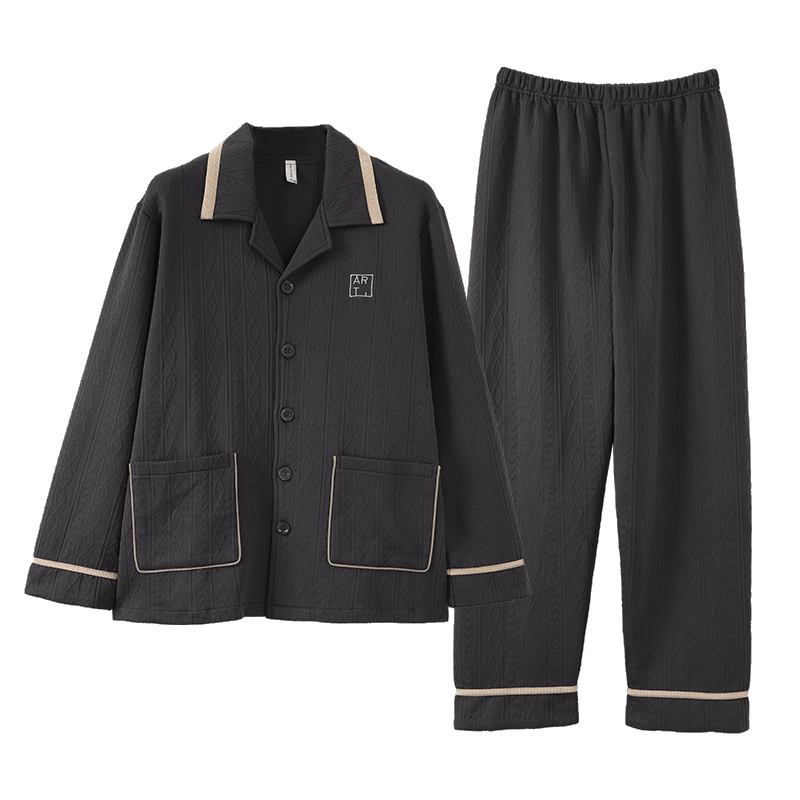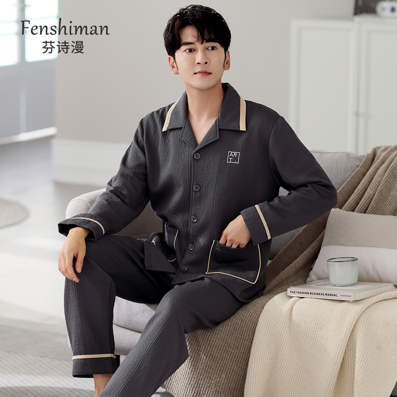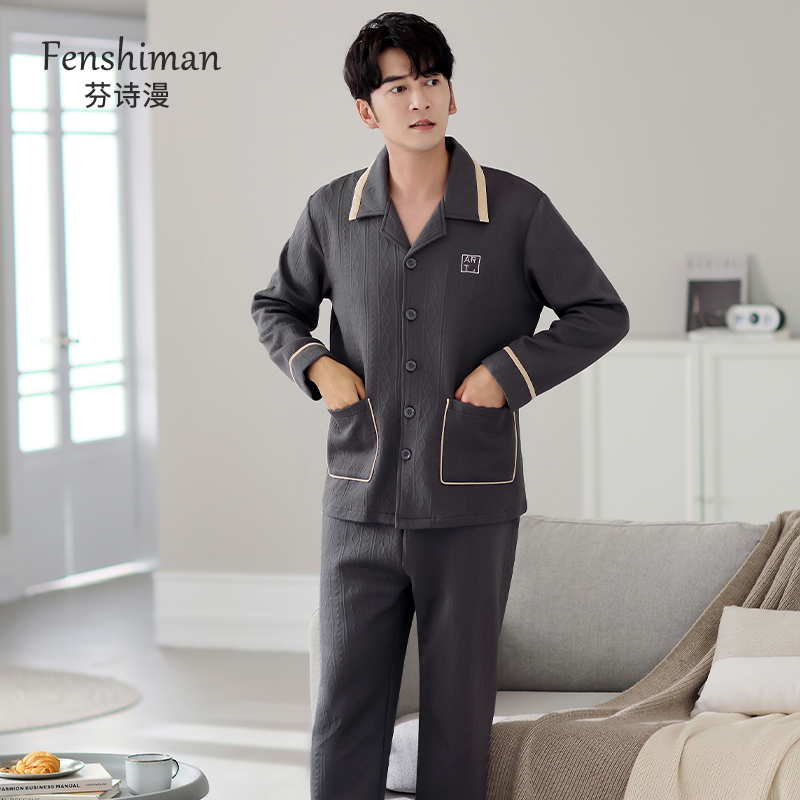 夹棉冬季 中厚款 空气棉夹层爸爸家居服 春秋加厚纯棉秋冬款 睡衣男款