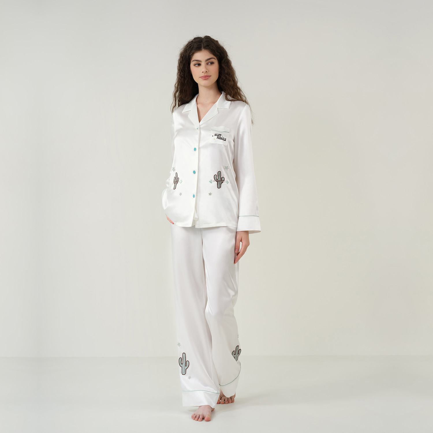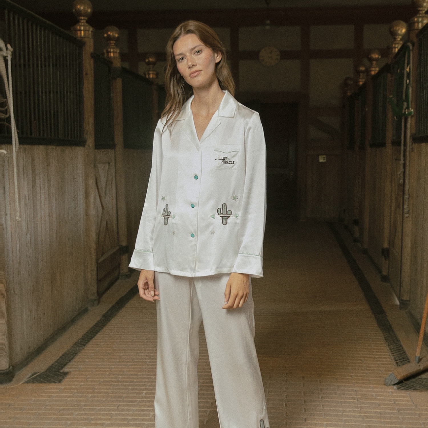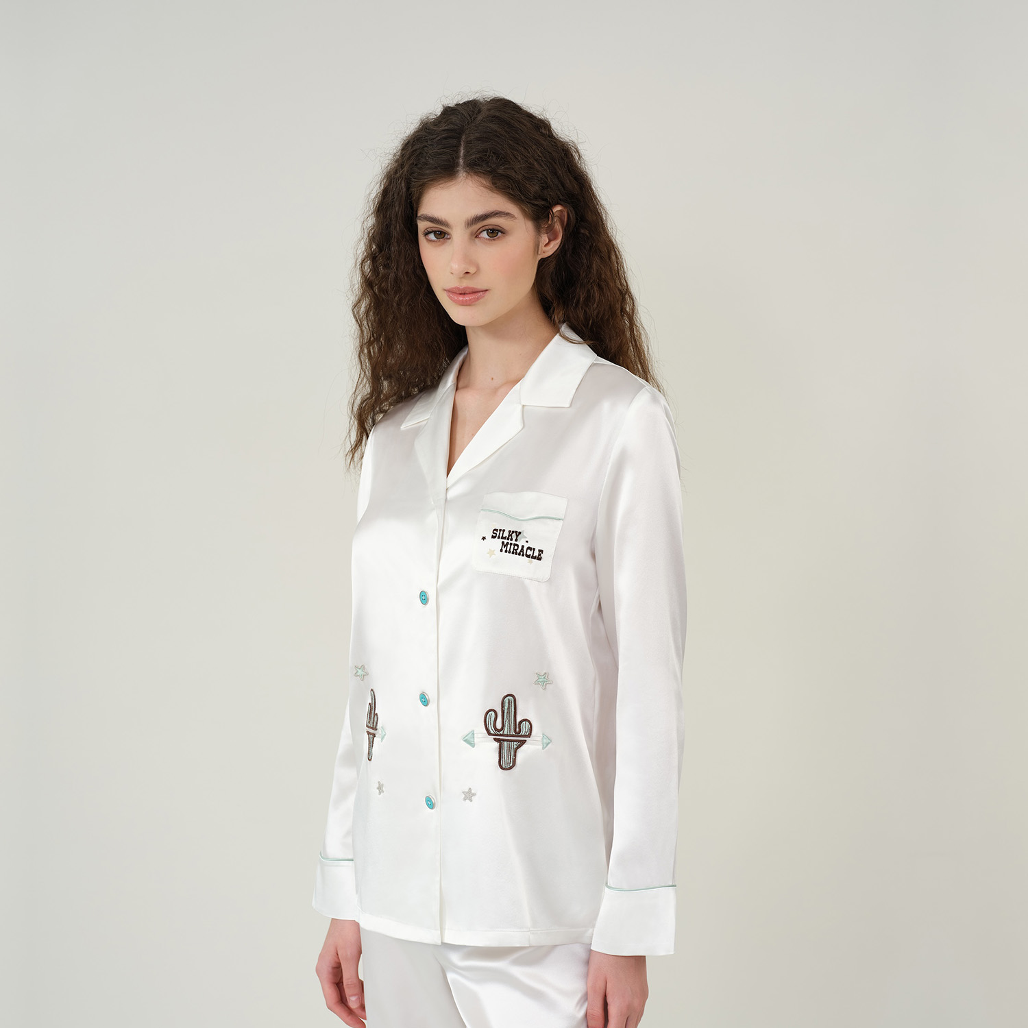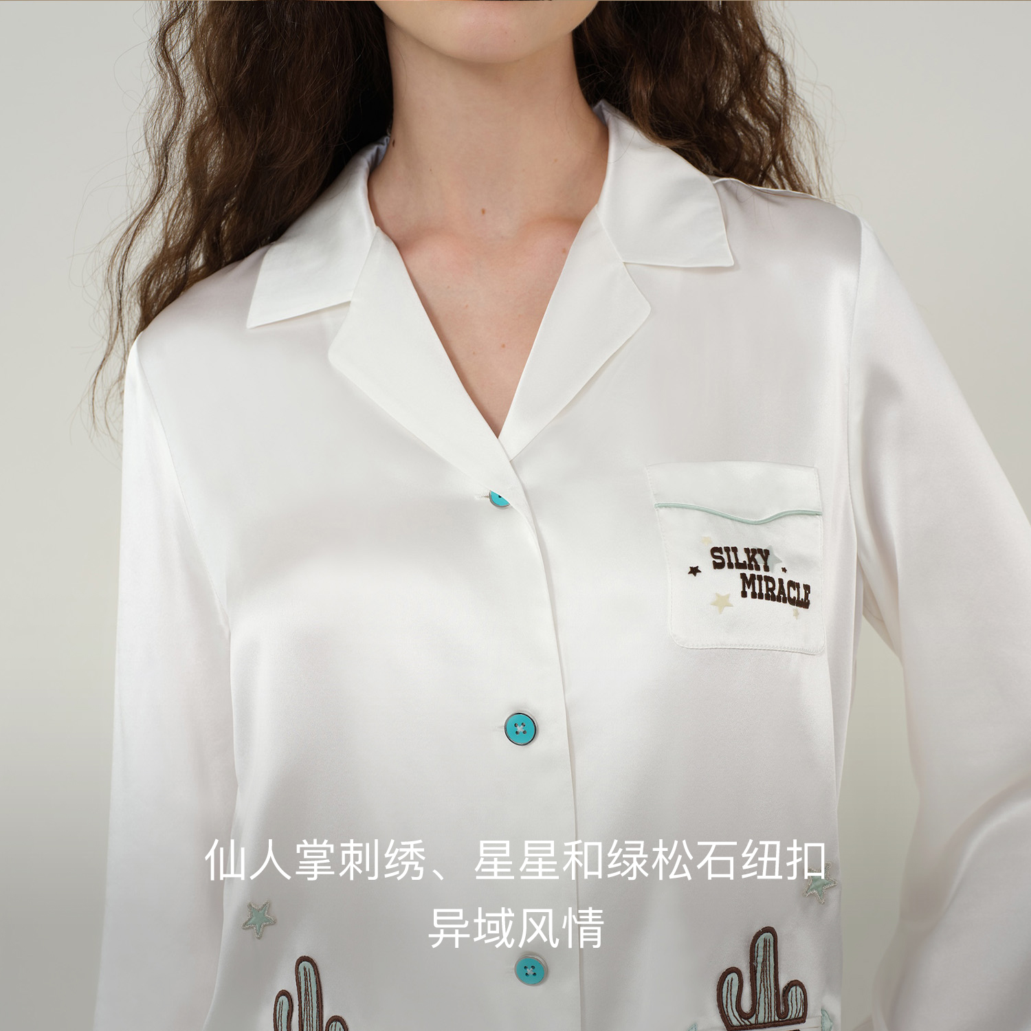 Cowboy仙人掌绣花桑蚕丝家居服女套装 SILKY MIRACLE真丝睡衣新款