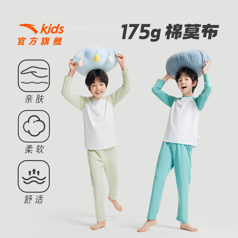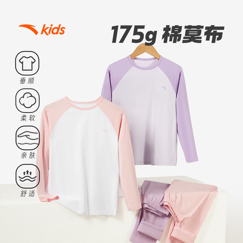 莫代尔棉睡衣 男童宝宝家居服春秋2025新款 安踏儿童装 女童内衣套装