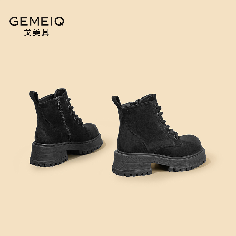 棉鞋 戈美其2024秋冬新款 厚底马丁靴女小个子短靴粗跟软皮加绒女鞋