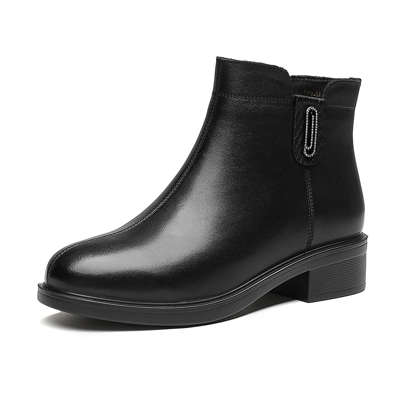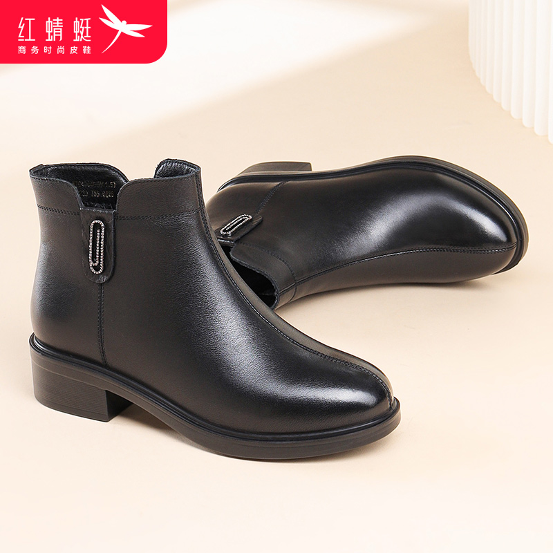 舒适女靴真皮加绒保暖轻便女时装 休闲时尚 靴 2025秋冬季 红蜻蜓女鞋