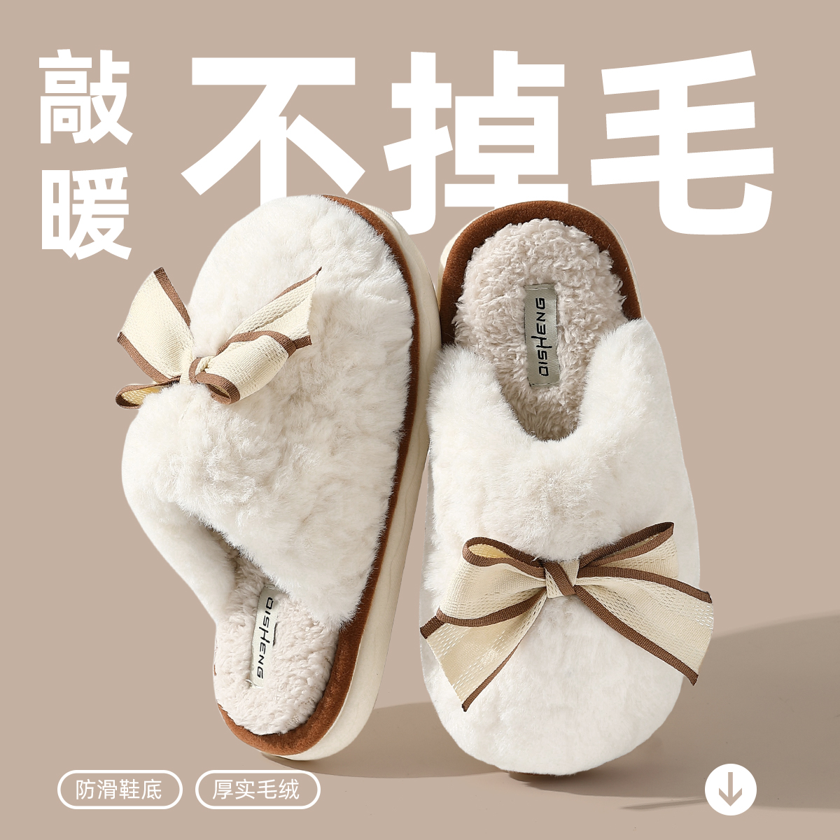 室内家居加绒保暖厚底防滑棉拖女士 2025新款 蝴蝶结棉拖鞋 女秋冬季