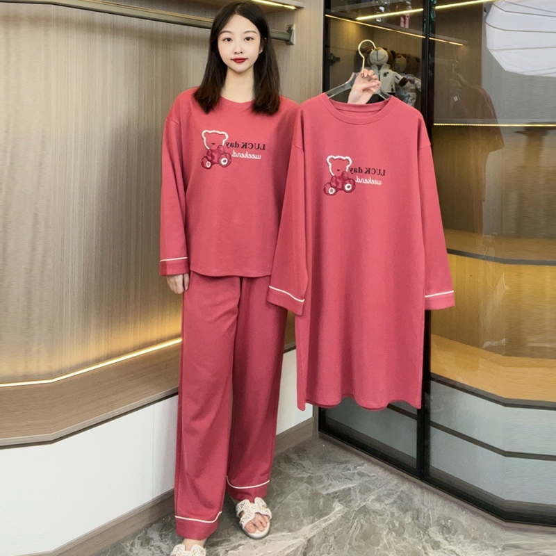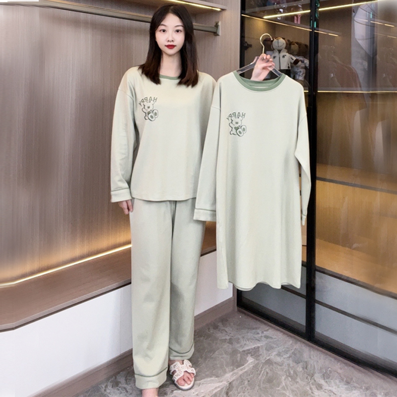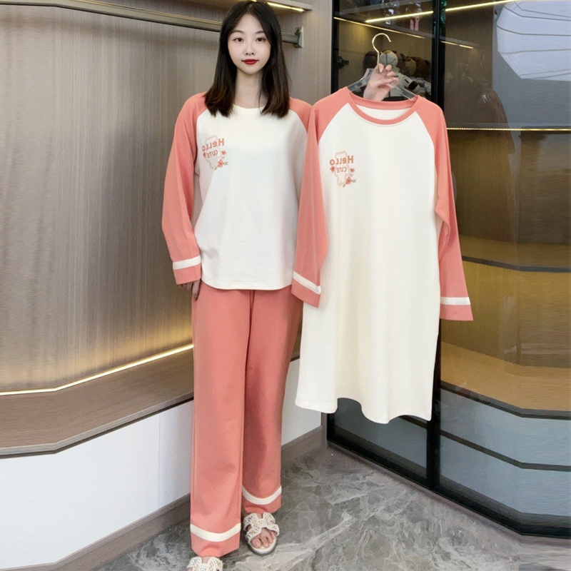 长袖 春秋款 针织睡裙秋冬款 长裤 家居服 三件套睡衣女款 套装 2025新款