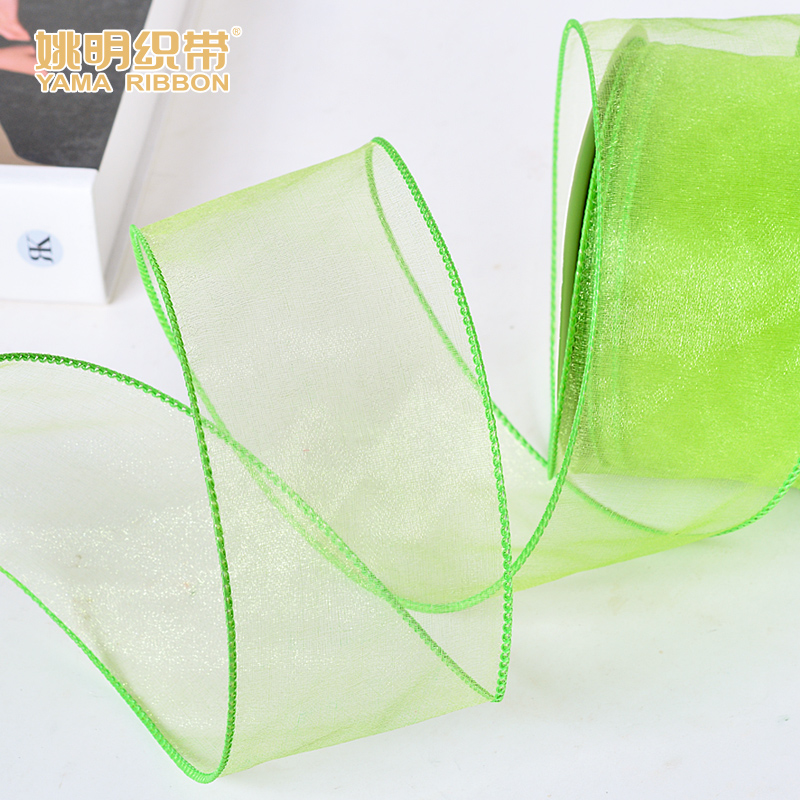 姚明织带尼龙雪纱水晶纱拷克带铁丝边丝带63MM家居装 饰礼品包装