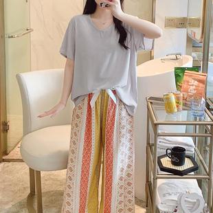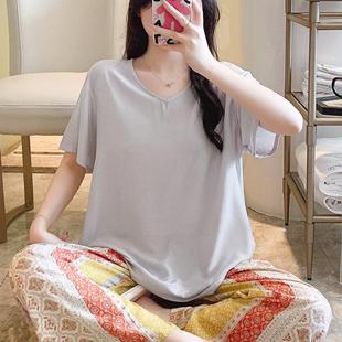 人造棉家居服女上衣 棉绸睡衣女士绵绸上衣T恤v领大码 夏季 纯色短袖