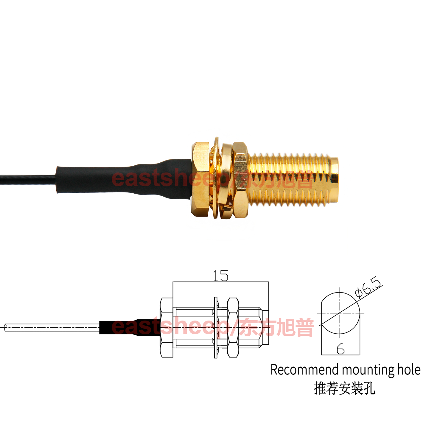 MMCX SMA 东方旭普 SMA母加长15mm RG1.37镀银细连接线