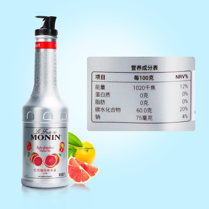 莫林MONIN果酱果泥1L红西柚水蜜桃青柠复合莓芒果蓝莓无花果
