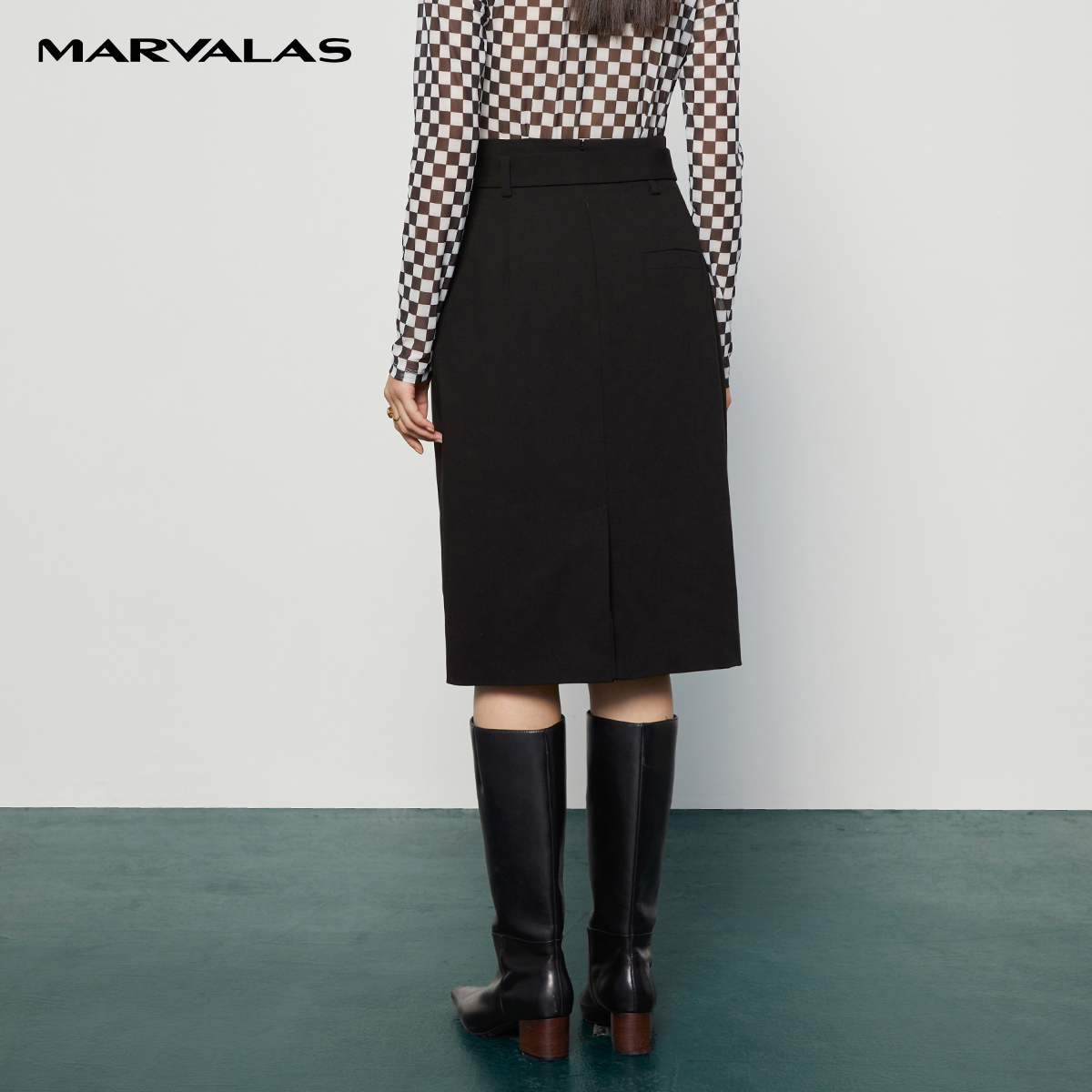 裙子 伞裙西装 图曼朵黑色a字半身裙女秋正装 教资面试职业半裙套装