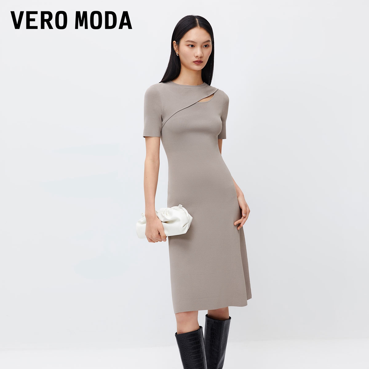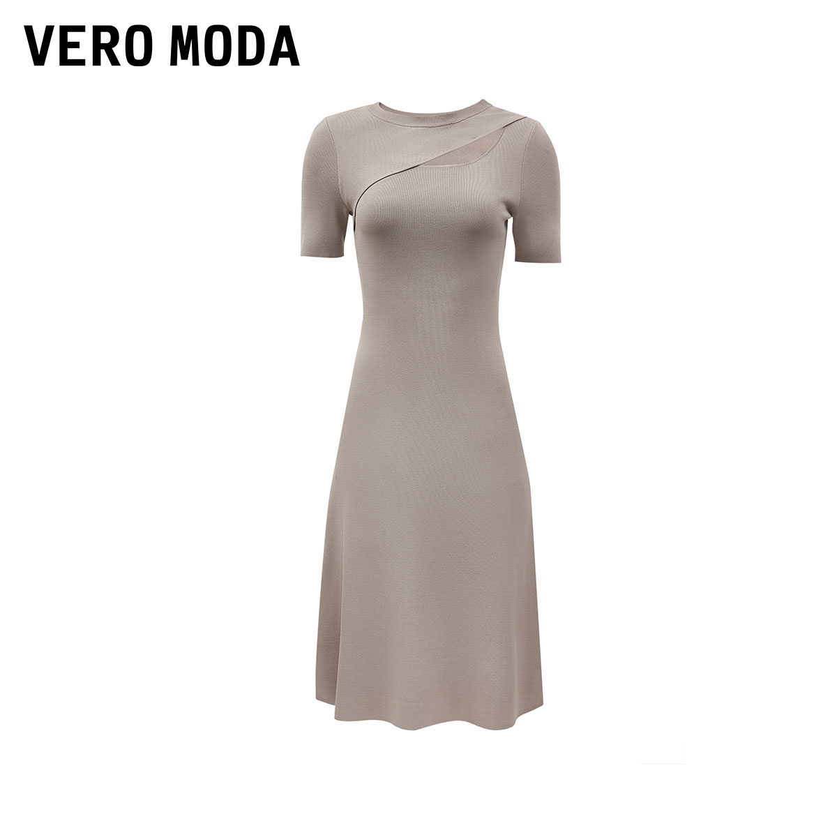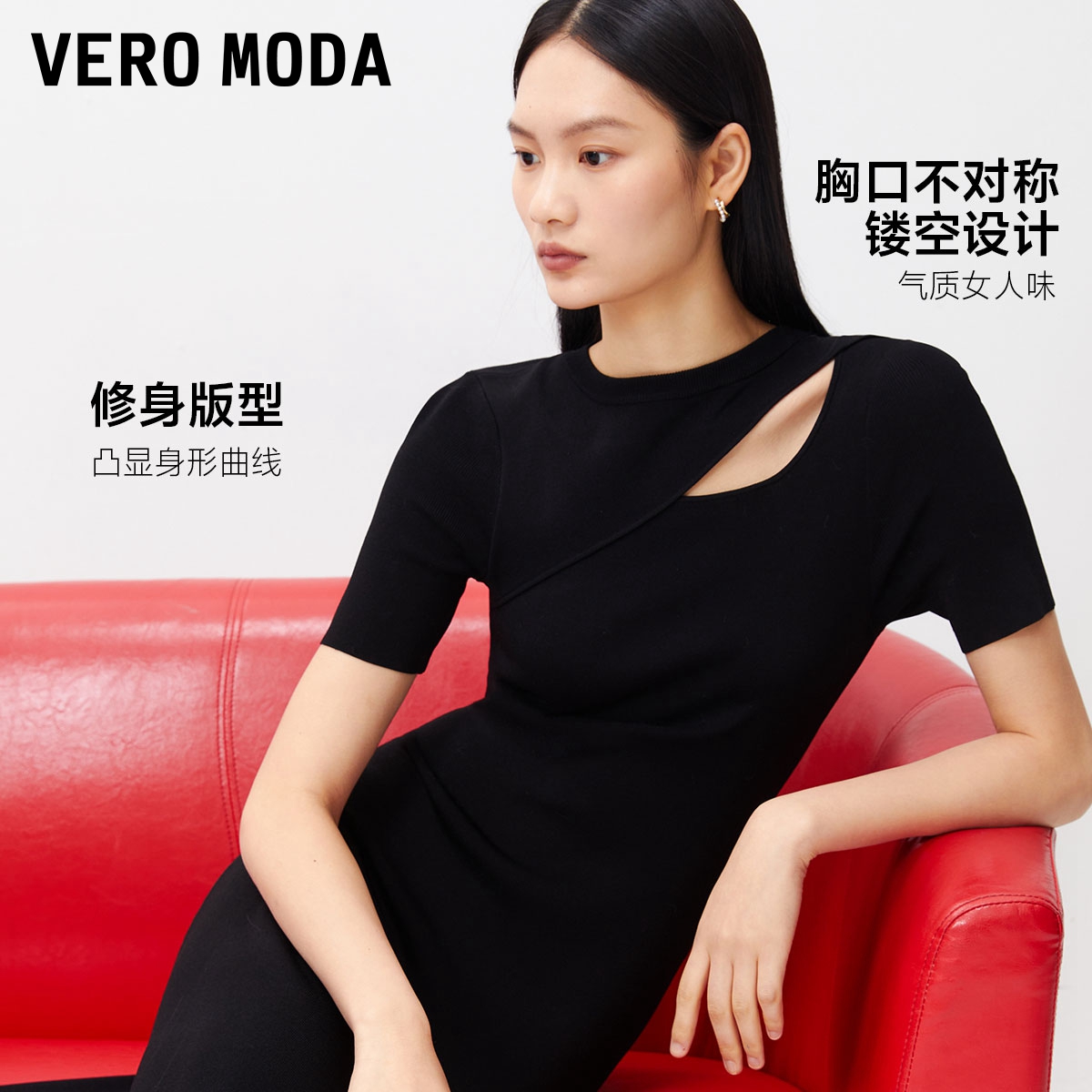 A摆收腰镂空优雅裙子短袖 Vero 修身 新款 Moda奥莱针织连衣裙秋季