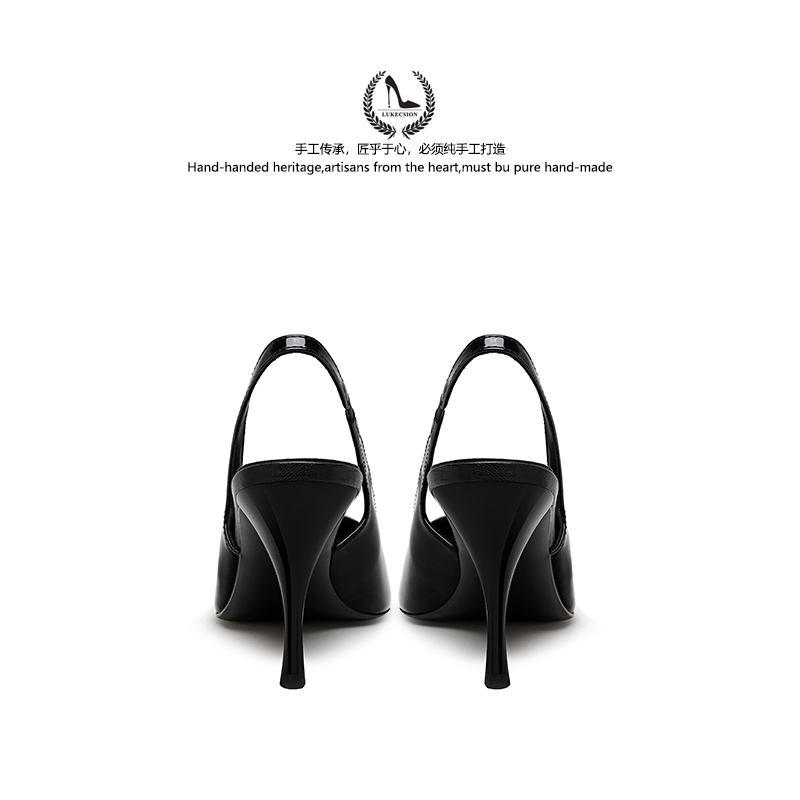 黑色漆皮朴彩英rose高跟鞋 路客森 金属头单鞋 包头凉鞋 女 2025新款