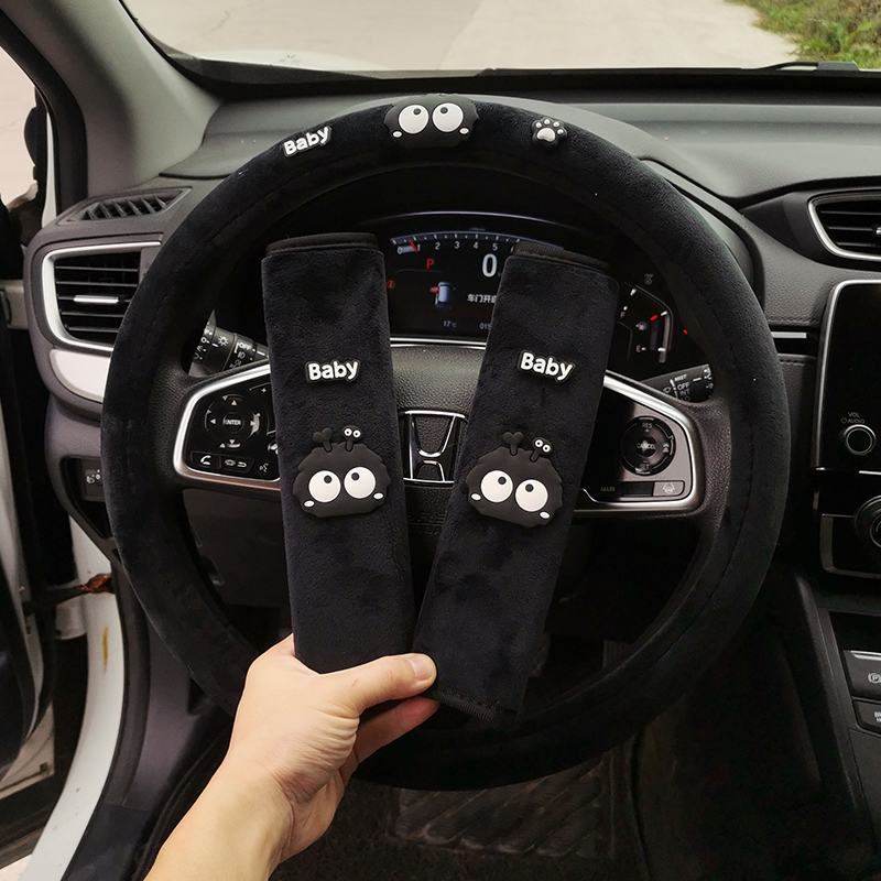 通用情侣款 煤球汽车短毛绒把套防滑保暖四季 方向盘套2025新款 冬季