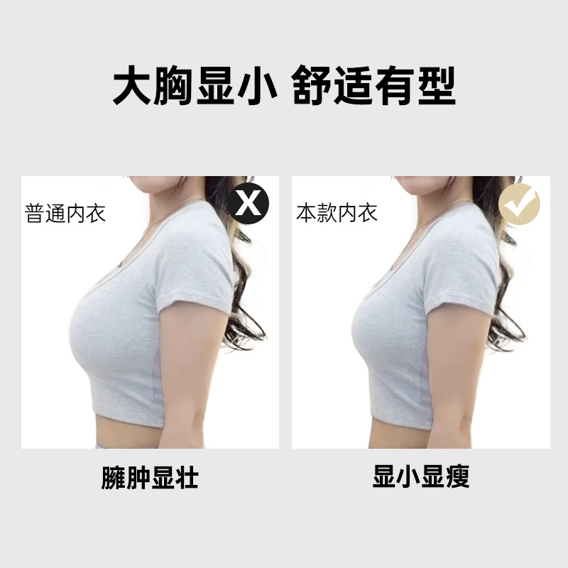 润微兔耳朵内衣女茶肌抑菌大胸显小胸薄款 收副乳无痕文胸7号杯