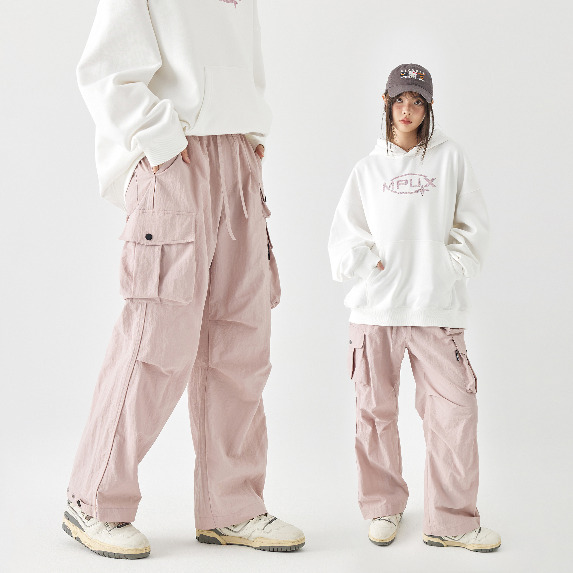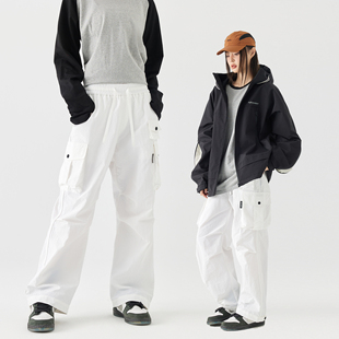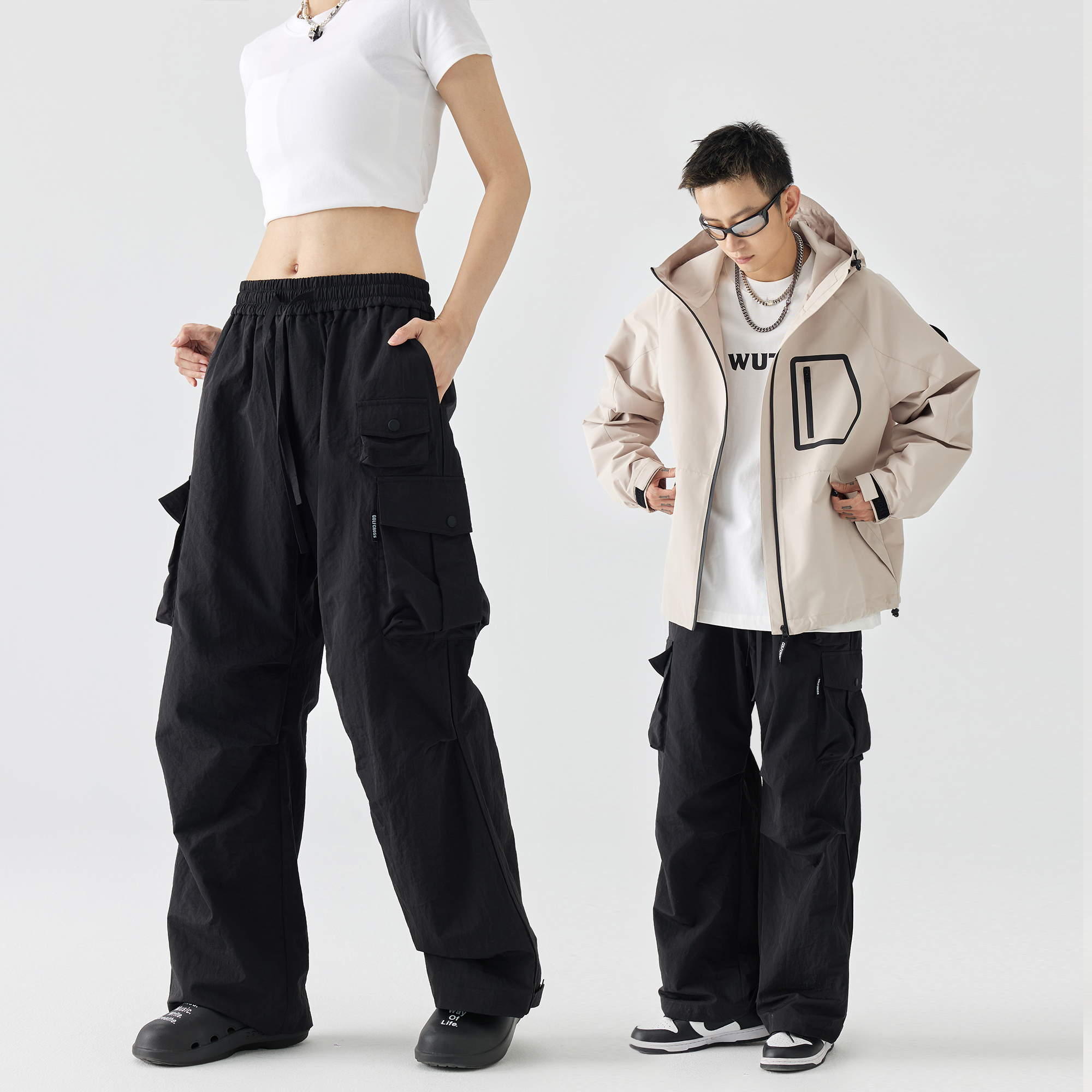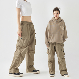 松紧腰抽绳宽松阔腿休闲裤 裤 纯色褶皱多口袋工装 GOLFCROSS情侣款