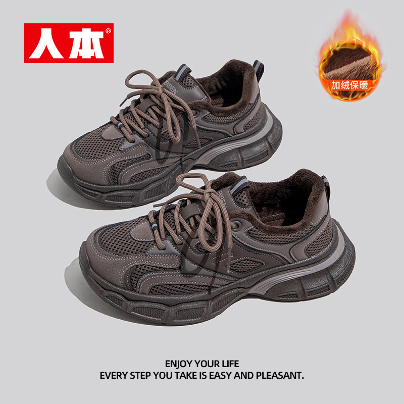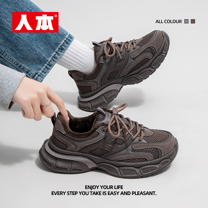 女款 厚底加绒增高休闲运动鞋 2025爆款 新款 秋冬季 达芙妮灰色老爹鞋